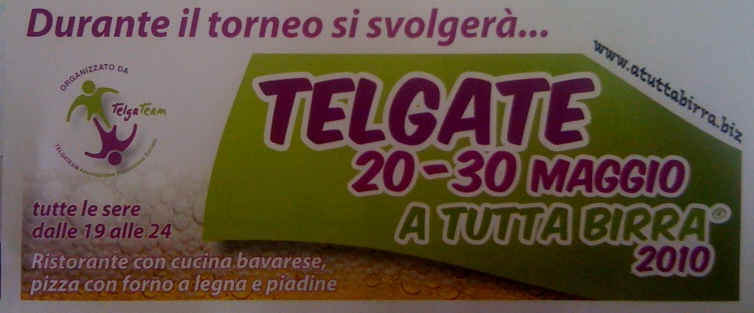 Dal 20 al 30 Maggio all’interno del Centro Sportivo Telgate si svolgera la Festa della Birra “A tutta Birra 2010” con cucina babarese, pizza con forno a legna e piade. Tutte le sere musica dal vivo con le migliori cover band.