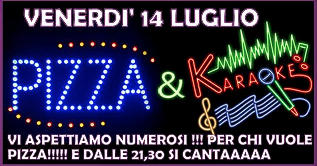 Serata pizza e karaoke con Luisa Mauro due veterani e professionisti del karaoke che non vedono l’ora di rendere la serata coinvolgente e di farvi cantare in compagnia.